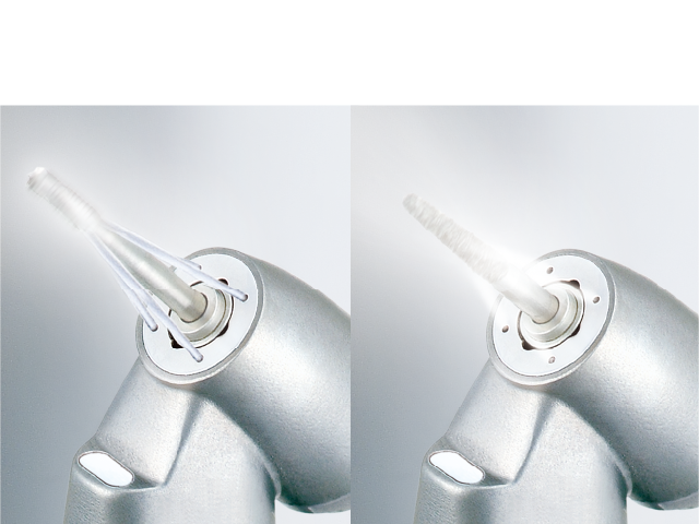 また、高いトルクに加え注水方式の切り替えによりチップエアーのないジェット注水が可能となっており、下顎智歯抜歯時の切断・除去や歯周外科・歯根端切除の観血的処置においての気腫の予防にも役立つ優れたハンドピースである(図2)。