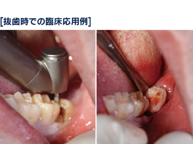 以下、抜歯時等での観血処置・支台歯形成・根管内形成・窩洞形成等の臨床応用についても図解にて説明する。