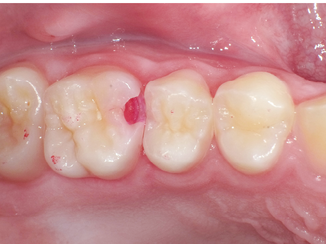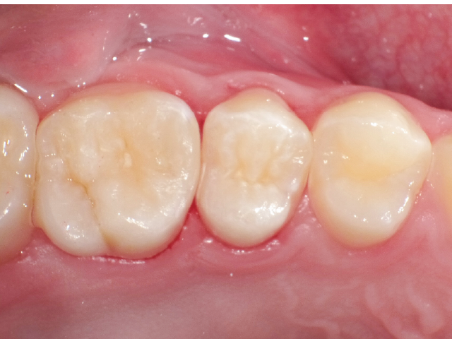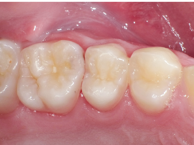 接着操作には窩縁部エナメル質へのセレクティブエッチングに続いて、2ステップタイプのセルフエッチングシステム(クリアフィル® メガボンド®2 : クラレノリタケデンタル)を使用し、フロアブルレジンとペーストタイプレジンとを併用したシンプルな積層充填操作により隣接面形態を回復しました。