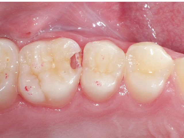 臼歯部隣接面における初期う蝕治療では、適切なタイミングで治療に介入し、充填操作の行いやすい環境で窩洞形成を終えることが、最終的な修復の長期予後を左右します。う蝕が象牙質に進行することにより、エナメル‐象牙境におけるう蝕の範囲拡大が起き、その程度により修復難易度が決定されます。よって頬舌側の隅角部の残存歯質量と歯肉側窩縁のエナメル質残存量が重要となります。