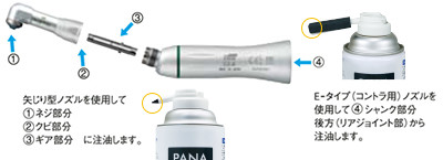 iCareは、ハンドピースのタイプに応じて適正な注油量をプリセットされていますので、下記手順に従って注油を行って下さい。
