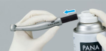 マイクロモーターに接続するストレートハンドピースやコントラアングルハンドピースは、注油後すぐに接続しユニットのハンドピースホルダーに立てると、ハンドピース内に残った余分なオイルがマイクロモーターに入り込み、マイクロモーターのトラブルの原因になります。注油の済んだハンドピースはマルチスタンドを用いて垂直に立ててしばらく置くか、またはケア3プラスのエアーブロー専用キーを使って内部の余分なオイルを抜いた後、マイクロモーターに接続して約30秒間回転させてください。 この時ハンドピース先端より余分なオイルが出てくる場合は、ハンドピースをよく拭き取りオイルが出なくなるまで回転させてください。先端からのオイルが歯面に付着した場合、歯面清掃や補綴物の接着などの際に適切な治療効果が得られない場合もありますので注意が必要です。