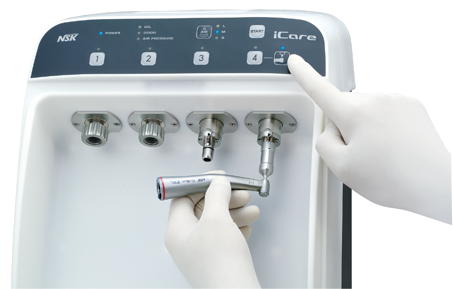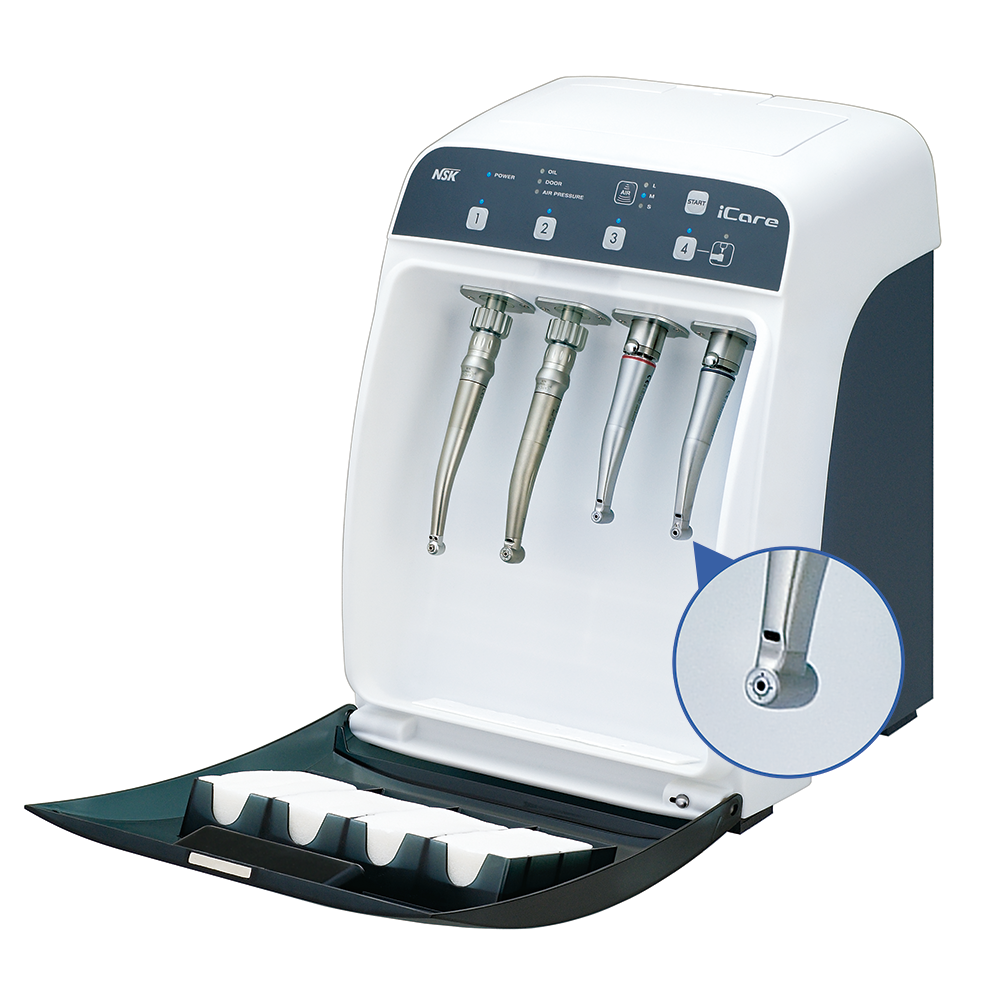 ハンドピース自動注油システム iCare は、ハンドピースのタイプに応じて適正な注油量をプリセットされています。下記手順に従って注油を行って下さい。 iCare ハンドピースの注油方法を見る